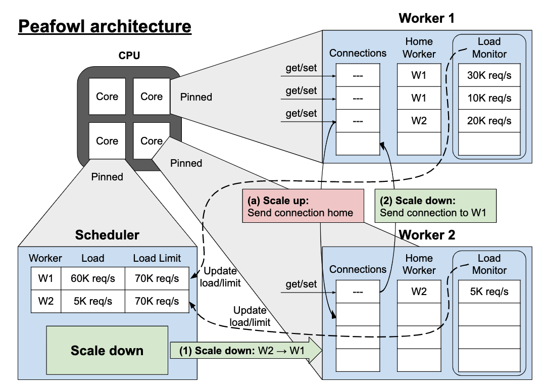 Peafowl: in-application CPU scheduling to reduce power consumption of in-memory key-value stores